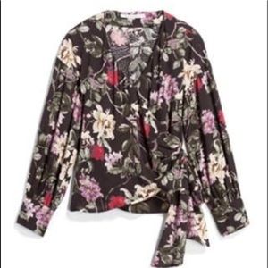 Beautiful Floral print wrap blouse 100 % Rayon Dry clean