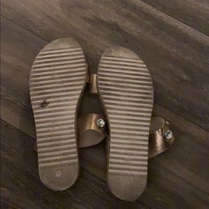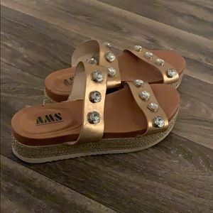 Platform Sandals with rhinestones across straps. Super cute rose gold color and have only been worn a few times. In excellent condition. Feel free to make an offer or bundle!