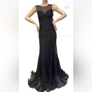 Make an extraordinary statement when you walk in this Montage and MonCheri, This wow- worthy sleeveless ombré Venice lace fit and flare offers a lace illusion bateau Neckline over a sweetheart bodice, a natural waistline, deep V-Back , stone accents and scalloped lace hemline. Separate short sleeves are included ,