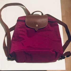 Brand New. Longchamp fuchsia backpack ๐ Foldable. Authentic. Purchased at the Longchamp store in France. YKK embossed on zipper.