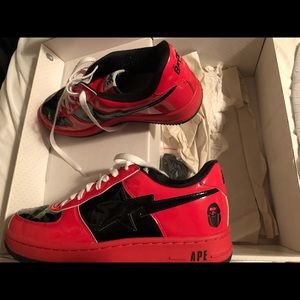 2006 Halloween Red Bape Shoes Men's US 9.5. Worn twice. Some creasing on the toebox but otherwise flawless. Haven't been worn in almost a decade. As is. Very good condition. Not worn since taking pictures.