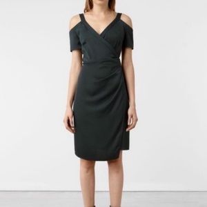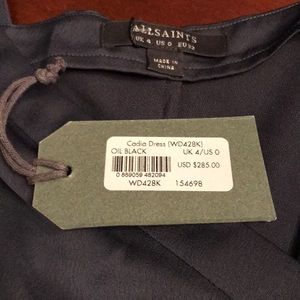 Gorgeous All Saints Cadia Dress in oil black. The dress has 2 eye hooks on the inside and 4 on the outside. New and retails for almost $300!