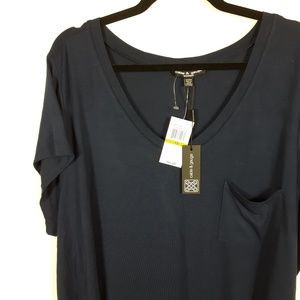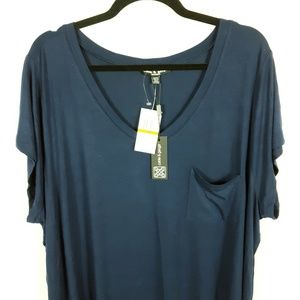 NWT navy blue v-neck t-shirt, one front pocket on chest. Very soft material with a lot of stretch. Size 3X.