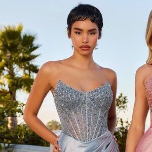 Burgundy Deep V- Neckline Sleeveless Leg Slit Jeweled Prom Bridesmaid Party Evening maxi Length Dress with Open Back and Zipper Closure.