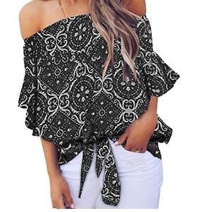 Floral Off Shoulder Flare Sleeve Blouse Top