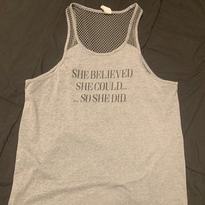 Ladies gray athletic tank top. Size small, breathable mesh back.