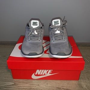 Grey & black Nike free run 2016. A little stained, may come out in the wash. Used multiple times still in great condition! (Not original box)