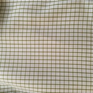 100% Supima Cotton. 16 1-2”- 35. Color: cream with light olive green plaid