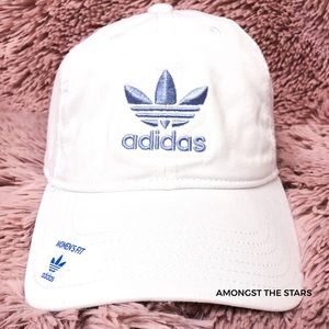 Brand new with tags, Women's, One Size. This adidas Originals Trefoil Relaxed White & Blue Strapback Dad Hat Cap is a must have! Made specificially for a Women's fit. Solid white with the Adidas Trefoil logo embroidered in baby blue on the front and back. Adjustable strapback for the perfect fit! Interior with Adidas Trefoil trim and grey underneath the brim.