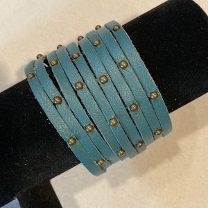 Adjustable Turquoise Leather Cuff has Snaps to Adjust to approx. 6 3/4” and 7 3/4.” Approx. 1 1/2” wide. Bundle 3 cuffs for $25. NWOT