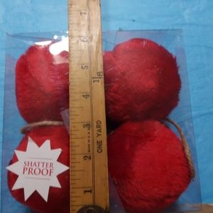 🆕 There are 4,🛑red,fuzzy non-breakable 3 inch round orderments with twine has hangers.They are NEW from a non-smoking pet free building.No odors. Fun for decorations, fun to play with and pet friendly, kid friendly, nursing home friendly. there are four in the box.