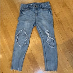 @ggourgyyy waist is 15" across. Rise is 9". inseam is 25". leg opening is 6". they are also firm jeans, not much stretch to them at all. hope this helps!