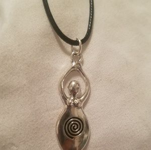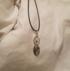 I like it because it's simple. She's zinc based alloy on a simple black cotton 20 inch rope cord with clasp and extender