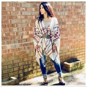 ✨LAST 1✨Beige plaid oversized gorgeous poncho cape