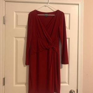 Only worn once! So comfortable and makes your figure look wonderful with the faux wrap style. I'm about 5'5 and it hit me at the knees.