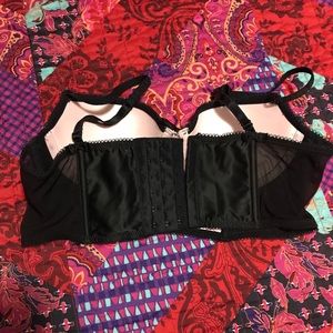 Short corset style bra. Light pink with black lace and mesh. Wore once. Can be adjusted.