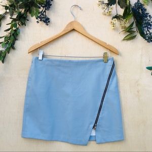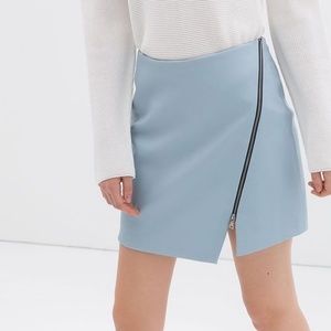 Zara Baby Blue Zipper Pleather Mini Skirt