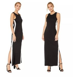 Bebe Women's size L Logo Tape Maxi Dress Black Thick Sweatshirt Material NWT NEW