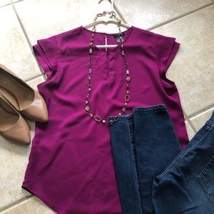 Anne Taylor keyhole top in great color. A little bit of wrinkling around the keyhole. May be fixed with some care and an iron