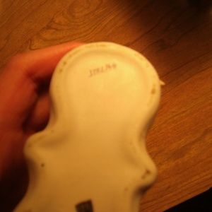 Vintage Porcelain double CANDLESTICK Holder or Candelabra Tiawan/China #44/792T. Bisque type, gritty feeling Porcelain. 3-D flowers and green leaves. One yellow flower petal might be chipped, but could also be that it is supposed to be like that. Very hard to tell, please see photos. Measures 4 inches across and stands about 3.25 inches tall. Nice piece from an estate sale. Remaining sticker on bottom looks like it says Tiawan/China, but only half of sticker is left. The stamped number