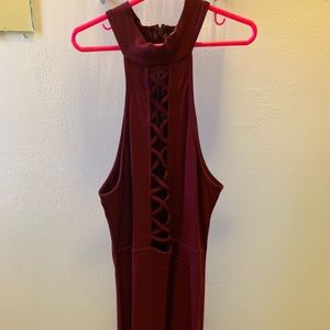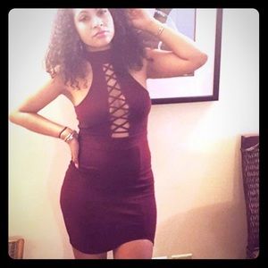 This burgundy dress is fitted to your body. The cutout makes this dress a bit more sassy! The bottom of the dress has a rounded small slit on the side that gives your legs some sexy! Fits true to size. THIS IS A FINAL SALE ITEM!