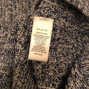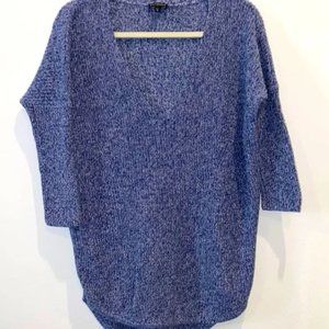 Blue tweed express sweater with 3/4 sleeve and deep cut v neck.
