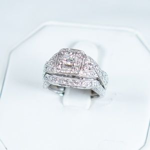 14k white gold diamond bridal set. center stone princess cut. with round diamonds. H Si clarity Over 1ct total weight. Size 6 Guaranteed authentic poshmark authenticates $500+ free size free gift box free shipping