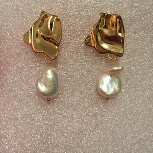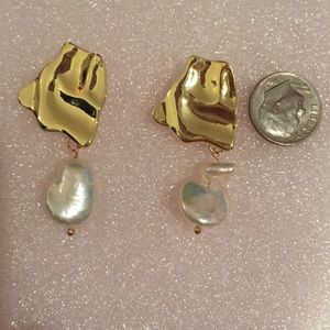 This pair of gold color freshwater pearl earrings is a wonderful addition to your wardrobe and your style! This fun and unique pair has a very beautiful and natural look and is sure to get many compliments!