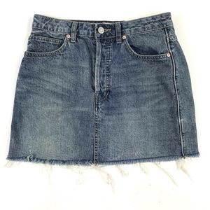 Free People Women's Rugged A-Line Raw Hem Button Fly Distressed Denim Skirt 26