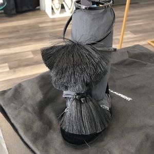 Gorgeous Pom Pom tasseled Yves Saint Laurent Heels in Black. These are authentic original Limited Addition, purchased direct from store. Never worn!! Size 9US 39 Euro. Fits true to size. Pom poms are black tassel soft and fall over foot. Inner Sole is a soft velvet for insulated step every time!!