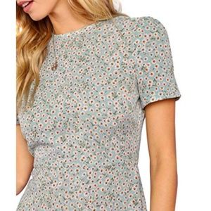 Crew Neck, Short Sleeve, Floral Print, A-Line, Casual, Mini
