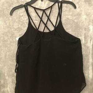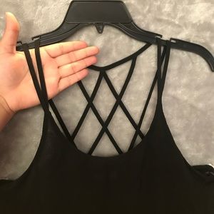 Black strappy blouse. I wore it front and back to show off all the strap detail