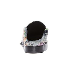 Designed to be worn with back folded up or down, floral camouflage printed velvet, articulated sole