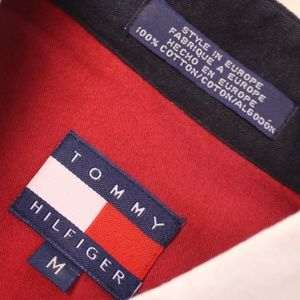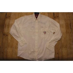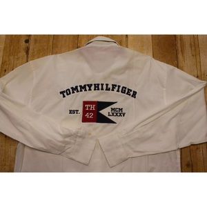 Vintage Tommy Hilfiger Button front shirt embroidered crest logo flag mcm mens M 100% cotton, style in Europe.