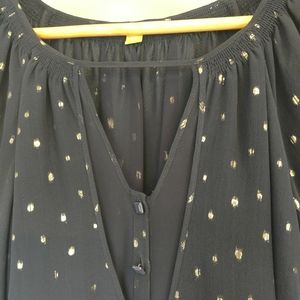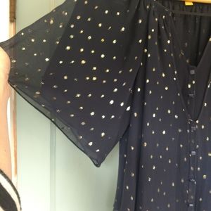 Adorable and flowy navy and gold sparkle top size small from Anthropologie. Would be great for the holidays. Very flowy feminine details, triangle opening in front with buttons, double layered. Excellent used condition no flaws. Please message me with any questions.
