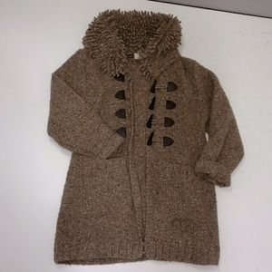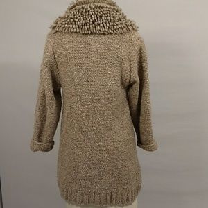 Irish Sweater Jacket Cardigan Coat Natural Neutral Fun Shaggy Collar frt Pockets