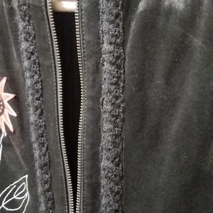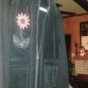 Super cute Par a phrase zip-front, sweater sleeves and back. Leather front jr Jacket with embroidered flower and 2 small pockets ...One small spot shown in pictures. ๐