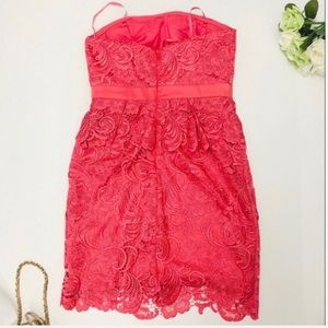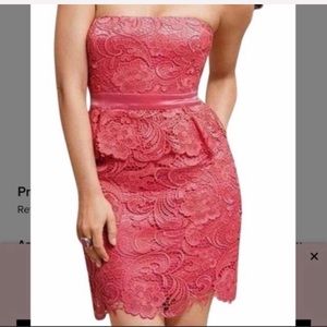 NWT CACHE DRESS CORAL Coral Peplum Lace Strapless