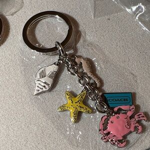 Keychain & pen. The black pen is 4 inches, keychain is 3 inches. Authentic Coach silver ring with 4 charms all marked on back with Coach logo, the charms are gold, black, and silver metal most have crystals. ships in a white jewelry box. #11 003 Dec22