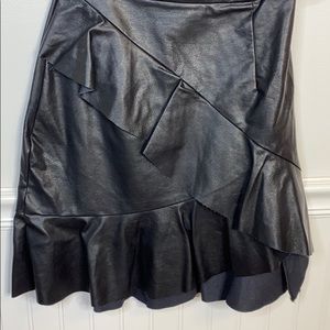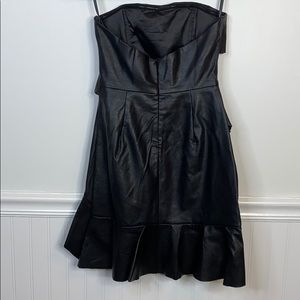 Leather Black Mini Dress with Ruffle Detailing and Strapless