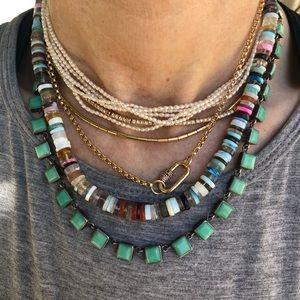 Hi there! I know the multi stone beaded necklace pictured here isn’t for sale. Bummer! Can you tell me who the designer is?