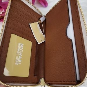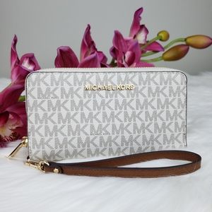 NWT Michael Kors Jet Set travel large LG flat zip around multifunction phone case wallet, wristlet