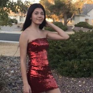 Red sequence strapless fashion nova dress