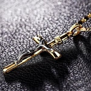 Simply divine. Featuring a two tone Crucifix Pendant, this Necklace shines with splendor. Showcase your faith whenever you wear this lovely Cross Necklace.
