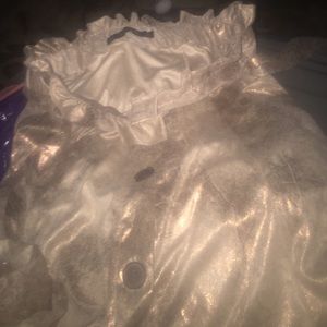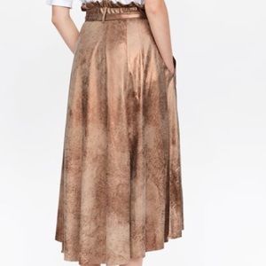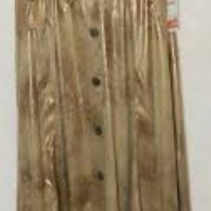 Waist band and tie waist, with bronze buttons and high low effect. Size medium.