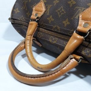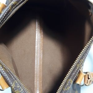 Vintage Beauty! Amazing condition! Zipper works great. Hardware still has shine. Super clean lining. Very mild odor from age. Minor wear on handles. Lower corner near base shows minor ink markings.