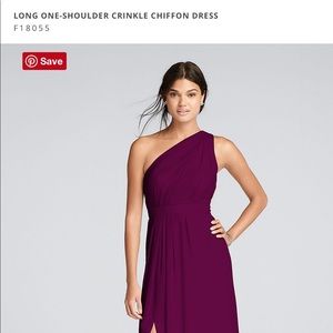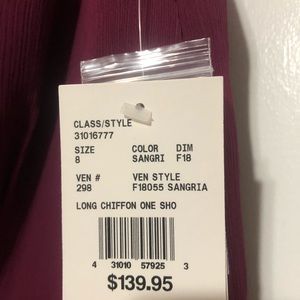 Long One-Shoulder Chiffon Bridesmaid’s Dress in color Sangria. Size 8. Never worn.