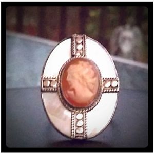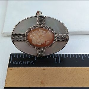 Sterl.Silver HandCarved Shell Cameo MOP Ring VTG