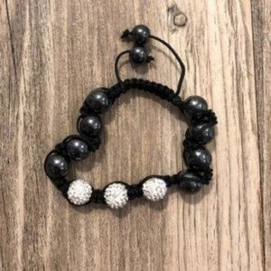 NEW Black Hematite Agate & Glass Crystal Bracelet