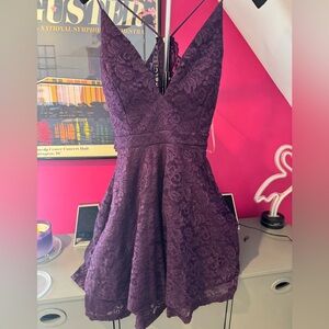 Bustier has black lace overlay with a raspberry red base. The bottom half is a light chiffon material with a liner underneath. In great condition!